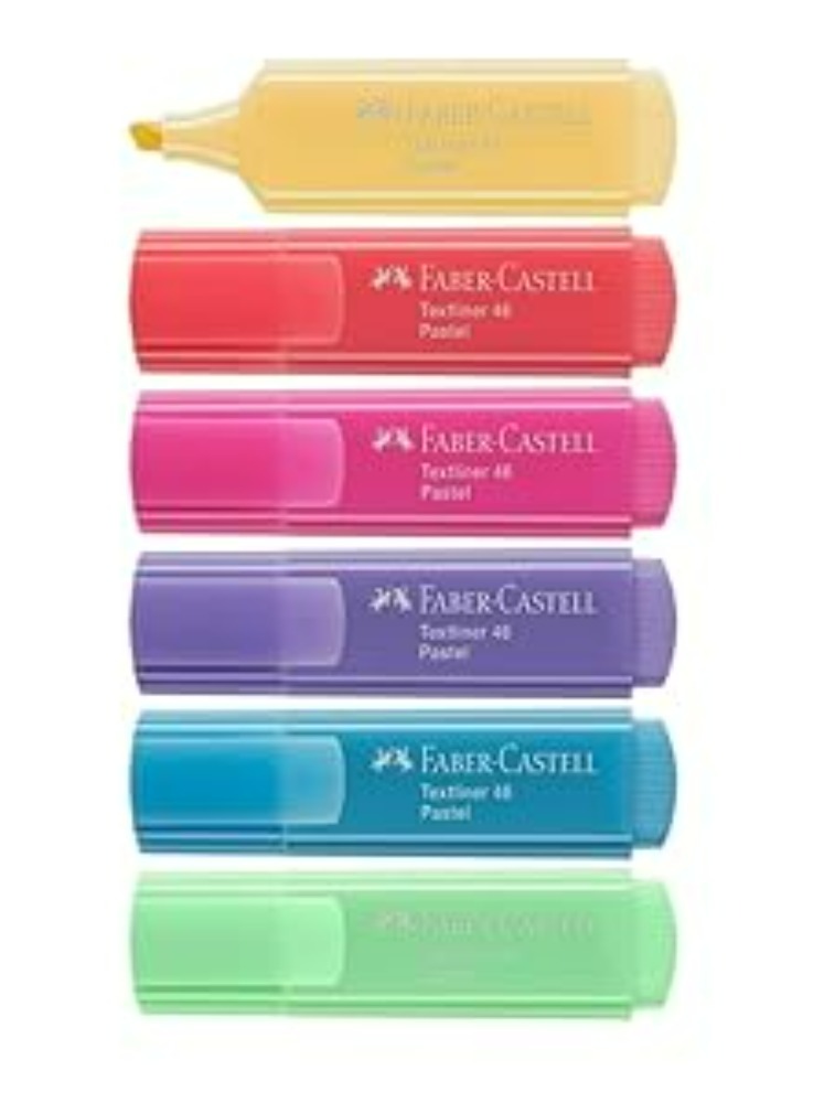 O Marca Texto Textliner 46 da Faber-Castell possui corpo ergonômico e a tinta não passa para o outro lado do papel. Ideal para destacar, grifar, decorar, lettering e muito mais.